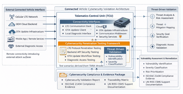 Deliverables: Structured test report | Traceability matrix (threat → control → test result) | UN R155 / ISO 21434 compliance evidence
