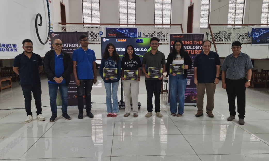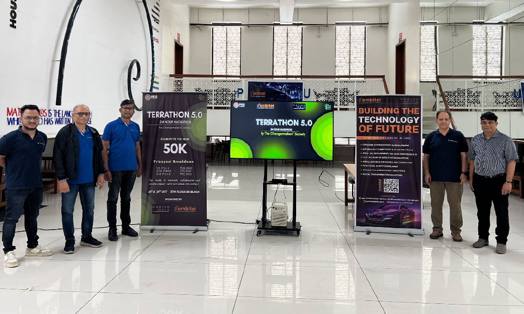 That spirit came alive at Terrathon 5.0, a flagship hackathon by PES University’s Club called The Changemakers’ Society. The event was held on October 25–26, 2025, at their Bengaluru campus. And this year, Embitel Technologies was proud to be a part of it, not just as a Partner/Sponsor, but as a mentor, motivator, and believer in the power of new-generation talent.