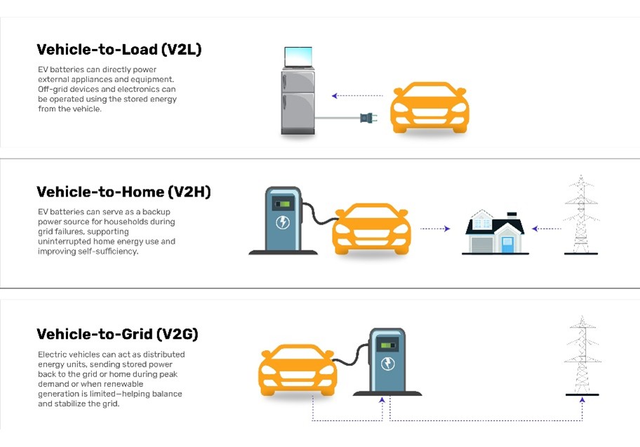 Bidirectional OBCs allow energy to flow from the grid to the vehicle (G2V) and back from the vehicle to homes, devices, or other vehicles (V2H, V2L, V2V), turning EVs into mobile energy hubs.